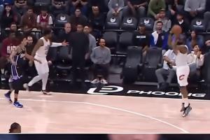 终场前2分多钟,骑士反击,米切尔回传助攻哈登命中空位三分反超比分。在哈登投进这球之前,米切尔已经提前庆祝了。